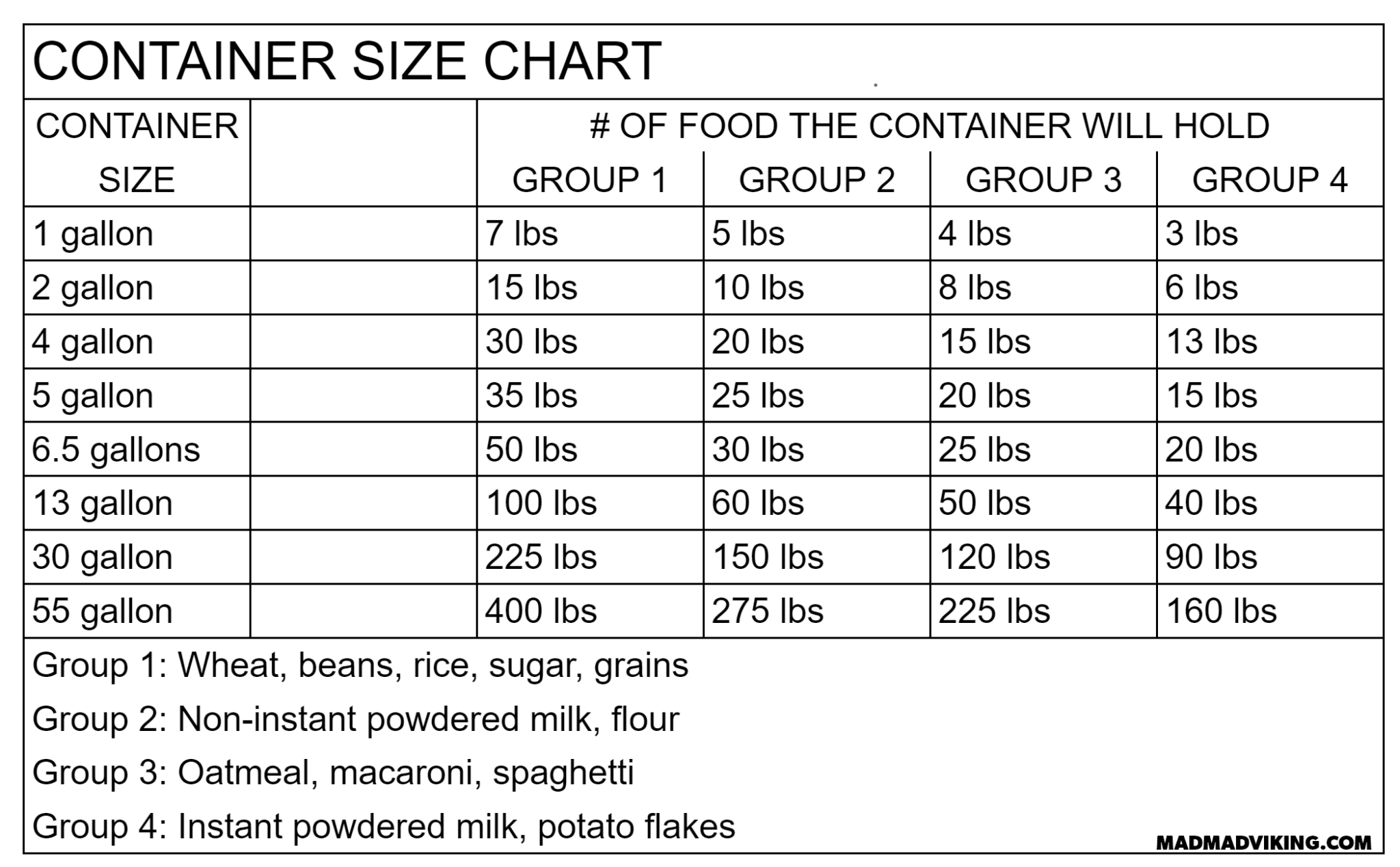 Container Size Chart